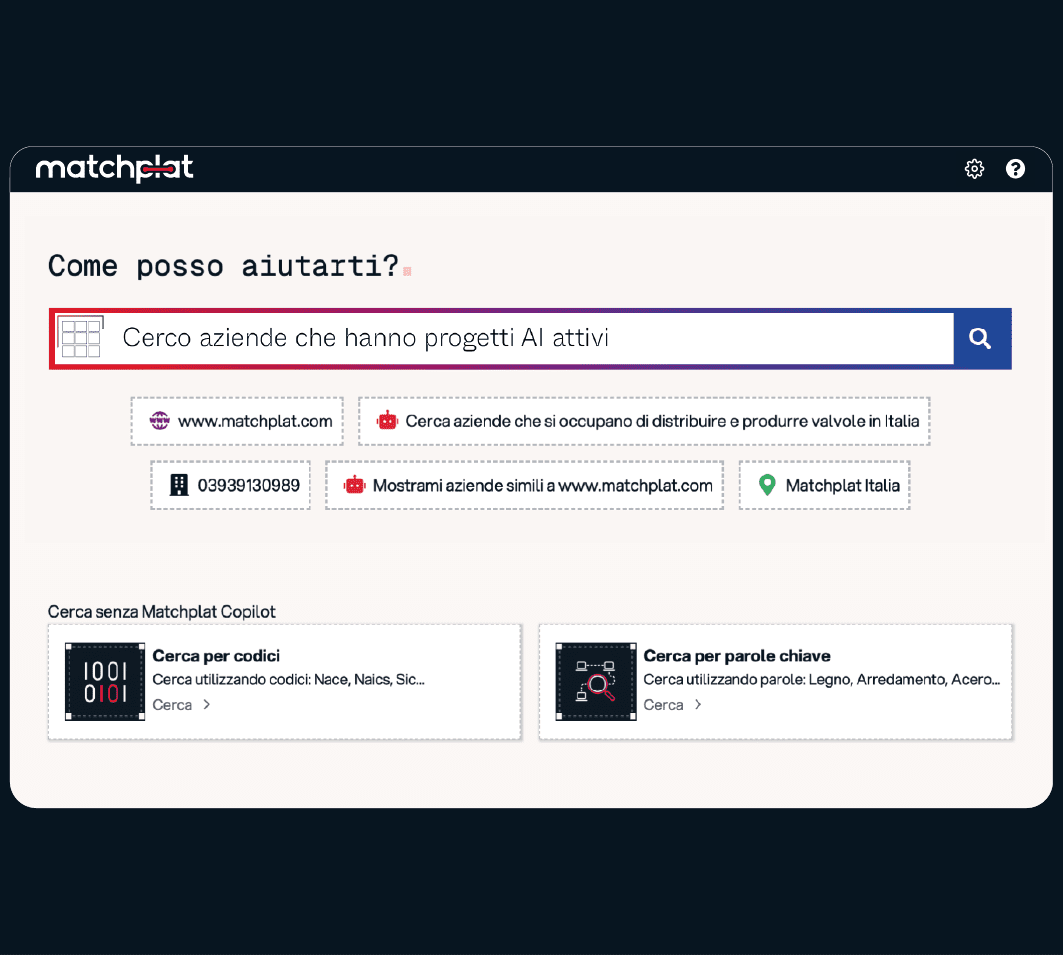 Dialoga con il nostro Agente AI e accedi a dati globali di aziende e persone. Trova i partner giusti e sviluppa nuove relazioni di business in tutto il mondo.