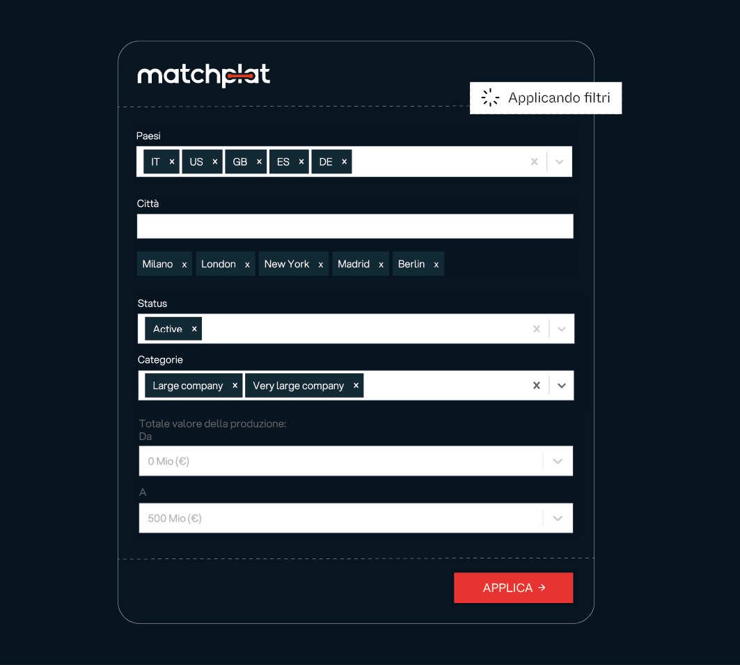"Utilizzando la piattaforma Matchplat abbiamo raggiunto i nostri obiettivi ad una velocità maggiore e i contatti trovati erano tutti perfettamente in target."