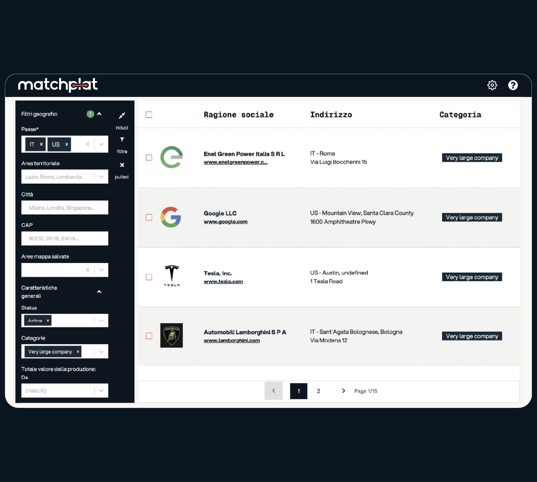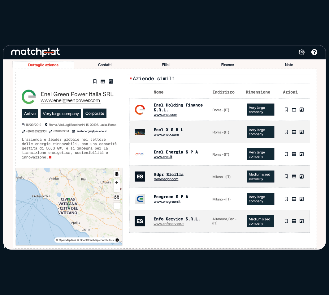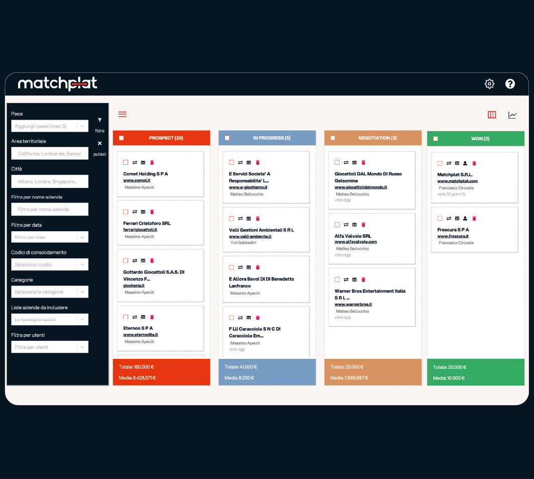 "Ricevere in tempi molto brevi una consistente lista di lead profilati è stato sorprendente. La maggior parte delle aziende segnalate sulla piattaforma Matchplat rientrano perfettamente nel target dei nostri clienti."